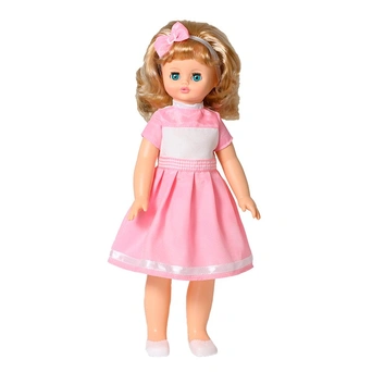Алиса Весна 6 из серии «Моя любимая кукла» - хорошая подружка для ребенка и настоящая модница. Она одета в нарядное платье с атласной лентой по низу, повязочку для волос с бантиком и туфельки. Качественно сшитая одежда позволяет переодевать куклу множество раз, развивая мелкую моторику и координацию ребенка. Попробовать себя в роли парикмахера помогут прекрасные прошитые волосы из качественного нейлона, похожие на натуральные, которые можно завивать, расчёсывать, укладывать в разные причёски, меняя образ куклы.