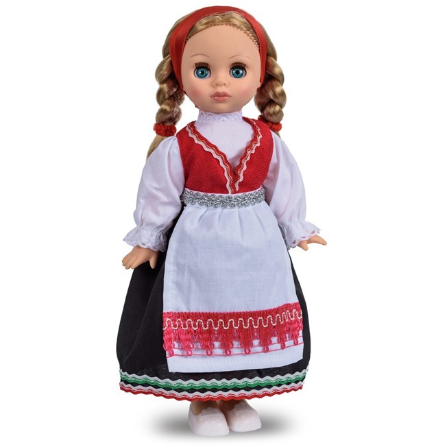 Кукла Эля Весна в норвежском костюме - это красавица, одетая в национальный костюм, состоящий из платья без рукавов, блузки, фартука, ободка на голову из атласной ленты, а дополняют комплект туфли. Благоара своему наряду, кукла может быть использована в качестве методической, для обучения детей культурным ценностям и традициям различных народов, населяющих нашу планету.