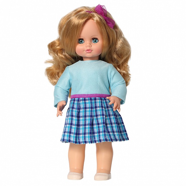 Инна кэжуал 1 - милая кукла с открытым, добрым личиком, выразительными глазками и пухлыми щечками. С ней девочка сможет придумывать великое множество игр, развивающих фантазию, сюжетно-образное мышление, а также чувство ответственности и заботы. Одета кукла в платье их разнофактурных тканей - верх трикотажный, юбка из шотландки, на ножках - туфельки-балетки. У Инны длинные волосы из качественного прошитого нейлона, очень похожие на настоящие, их можно причесывать, завивать и укладывать, меняя образ красавицы. Ручки и голова игрушки выполнены из качественного винила, тело и ножки - пластиковые, глаза - вставные закрывающиеся. Благодаря тому, что руки и ноги куклы подвижны, ее можно садить, ставить и укладывать спать, что разнообразит игровые сюжеты. Инна кэжуал 1 озвучена, при нажатии на звуковое устройство произносит следующие фразы: