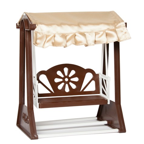 Размер игрушки в собранном виде, см 27х22х16,5Игрушка выполнена в традиционной для коллекции мебели и домиков цветовой гамме. Качели станут прекрасным дополнением к кукольной мебели для кукол размером около 20 см.