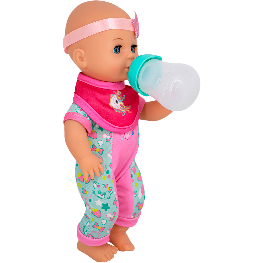 Комплектация: пупс – 1 шт., нагрудник – 1 шт., – 1 шт., бутылочка для кормления – 1 шт.