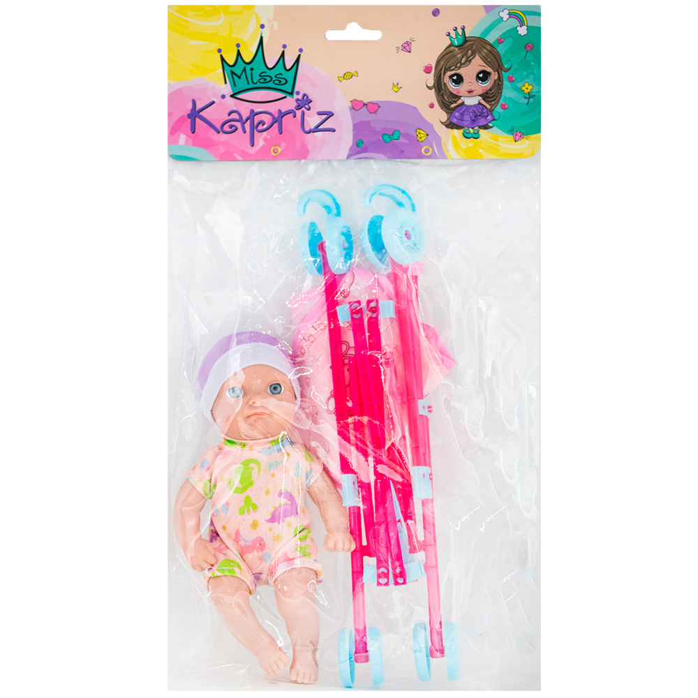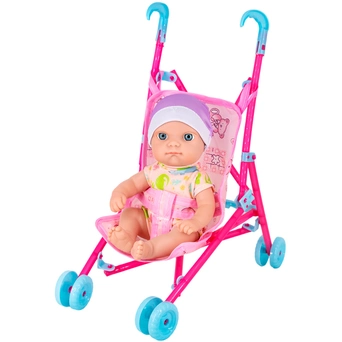 Пупс - одна из самых любимых детских игрушек. Отправляйся на прогулку вместе с малышкой, у которой есть красивая коляска - трость.