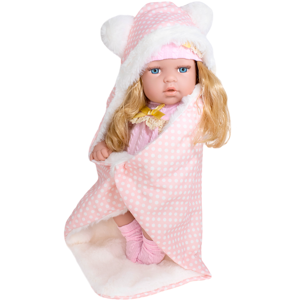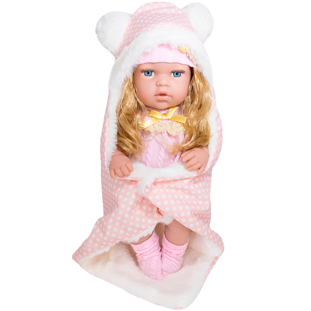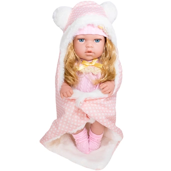 Комплектация: пупс - 1 шт., бутылочка - 1 шт., шапочка - 1 шт., боди - 1 шт., одеяло - 1 шт., носки - 1 пара