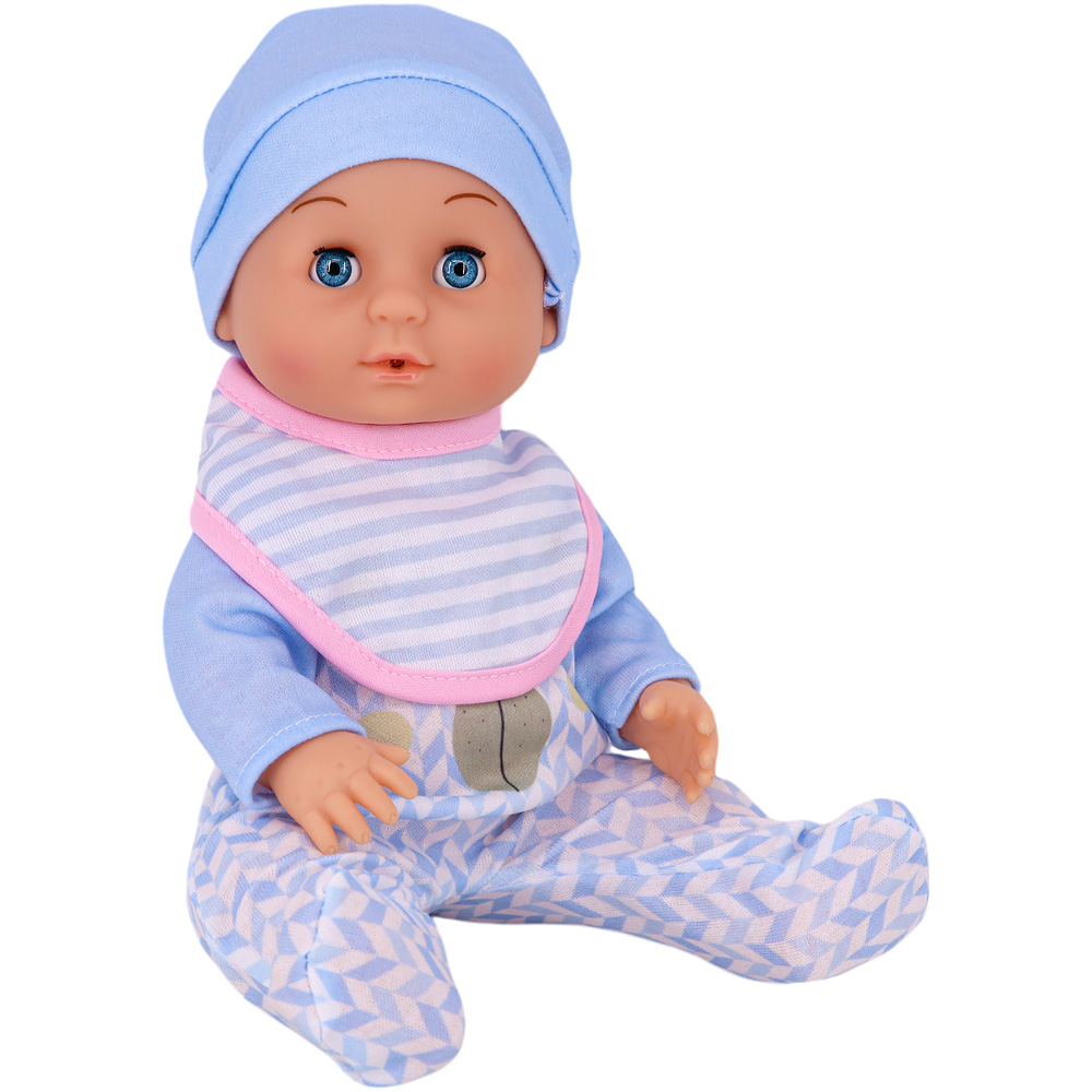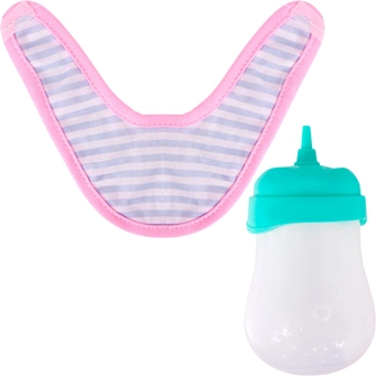 Комплектация: пупс - 1 шт, аксессуары: бутылочка - 1 шт, слюнявчик - 1 шт