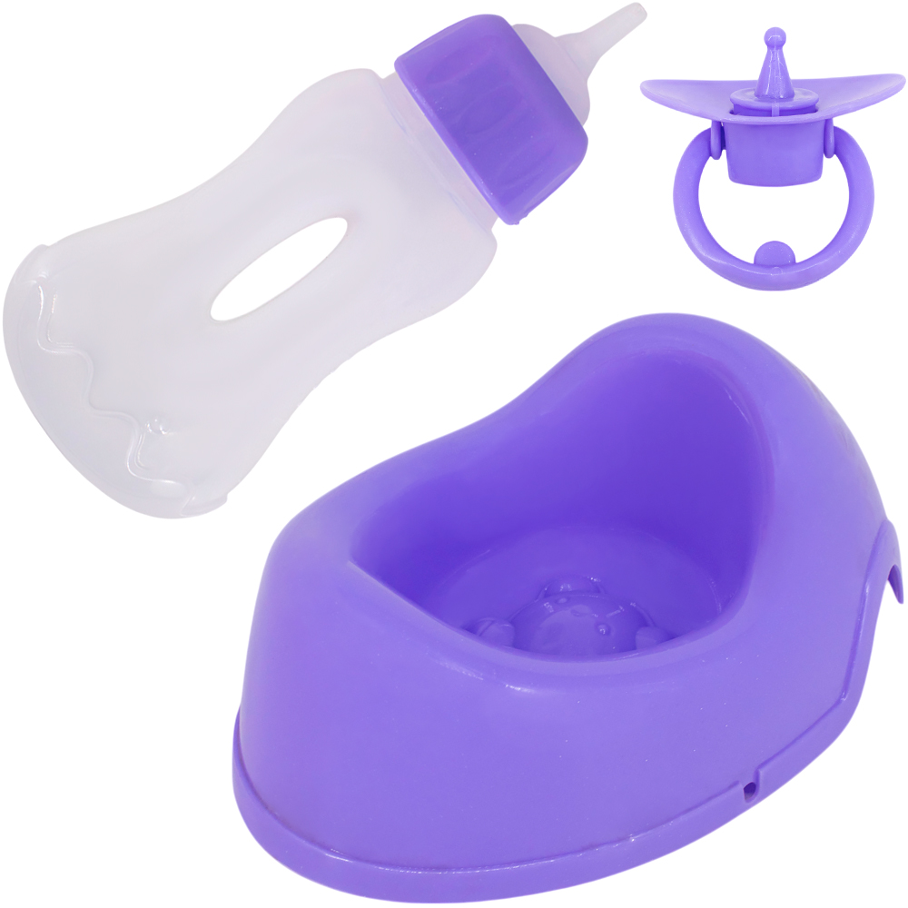 Комплектация: пупс - 1 шт, аксессуары: бутылочка - 1 шт, соска - 1 шт, горшок - 1 шт, переноска - 1 шт.