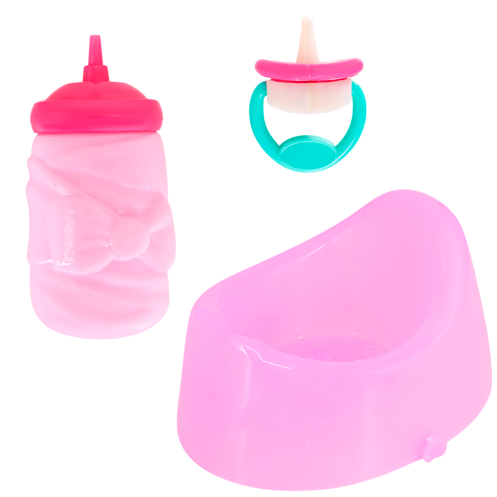 Комплектация: пупс - 1 шт, аксессуары: бутылочка - 1 шт, соска - 1 шт, горшок - 1 шт