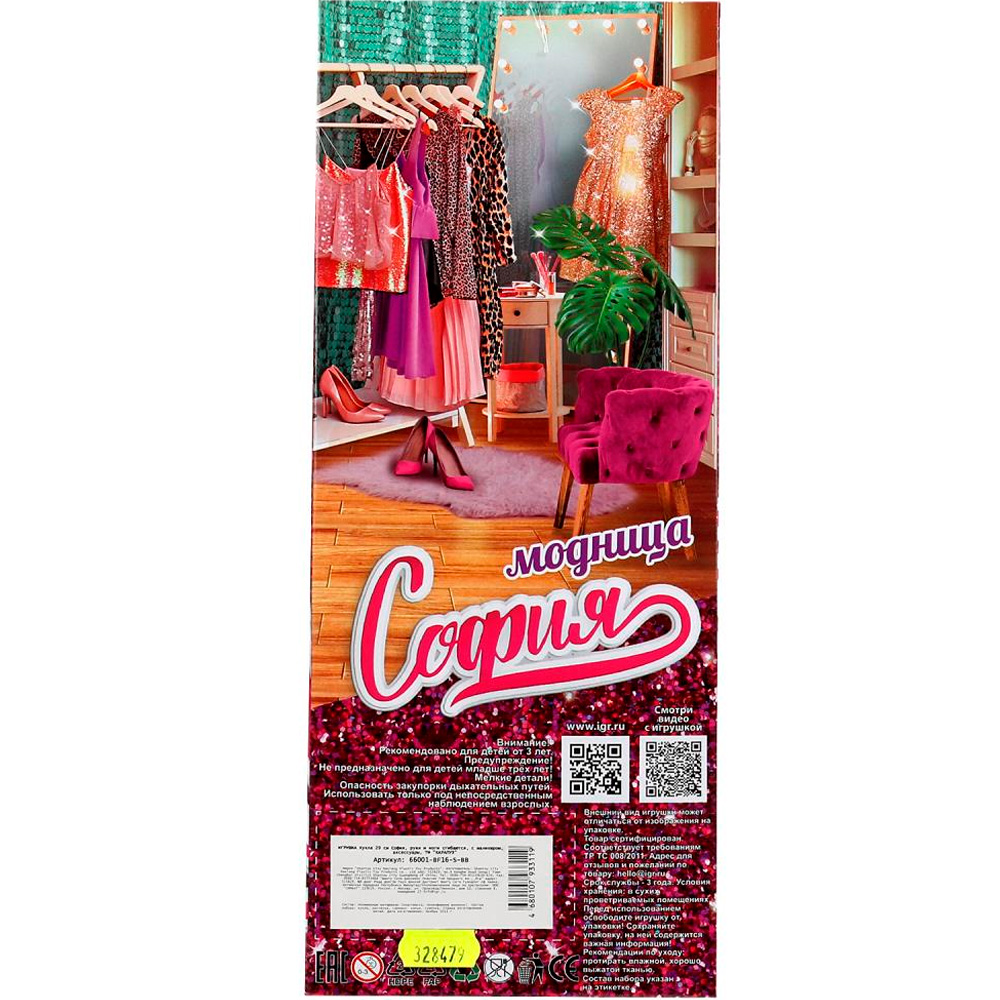 Размер упаковки: 13 х 6 х 33 смВысота куклы: 29 см