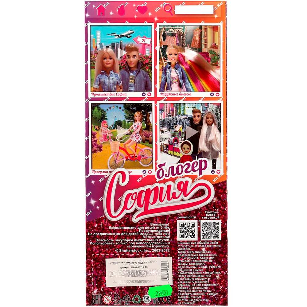 Размер упаковки: 13 х 6 х 33 смВысота куклы: 29 см