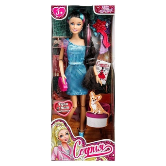 Комплектация: кукла - 1 шт., бижутерия, платье - 1 шт., туфли - 1 пара, питомец - 1 шт., аксессуар - 2 шт.