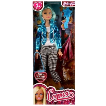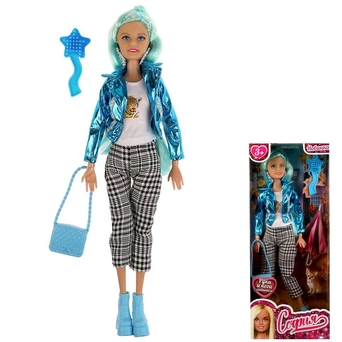 Комплектация: кукла - 1 шт., бижутерия, комплект одежды - 1 шт., туфли - 1 пара, питомец - 1 шт., аксессуар - 3 шт.