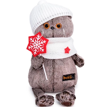 Кот Басик - известный персонаж и признанный любимец публики. Эта милая мягкая игрушка нравится не только детям, но и взрослым. Большая голова с выразительными круглыми глазками, смешные маленькие лапки и всегда стильные аксессуары - стоит только взглянуть на этого котика, и он обязательно завоюет и ваше сердце.