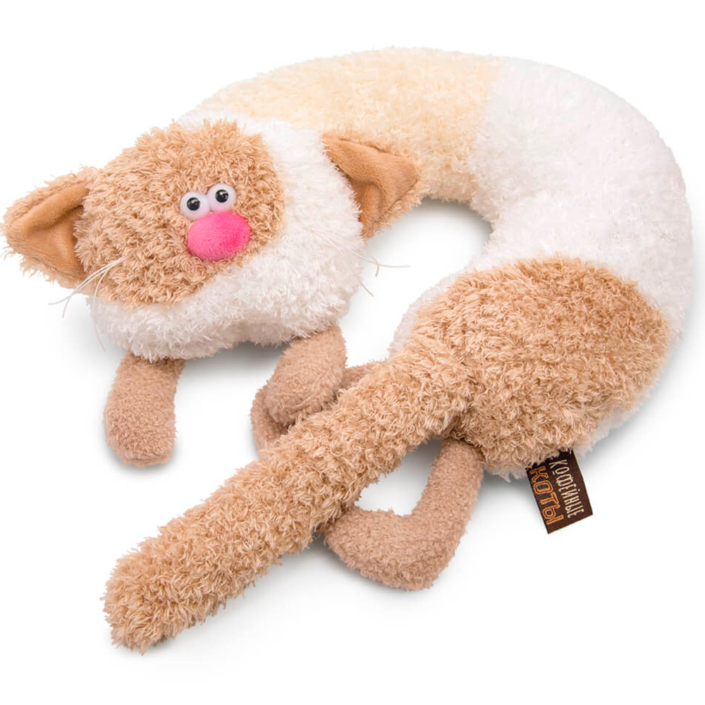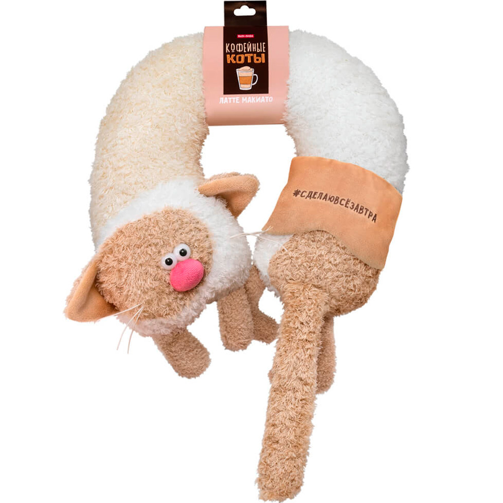 Очаровательный кофейный котик - это и игрушка, и подушка.