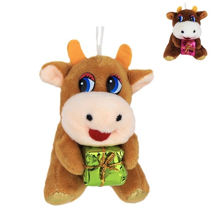 Мягкая игрушка в виде коровы - символ года 2021. Коровка станет приятным сюрпризом для детей и взрослых, весь год она будет создавать отличное настроение и напоминать о своем дарителе. Игрушка мягкая и приятная на ощупь, изготовлена из качественных безопасных материалов, сверху имеется подвес в виде шнурка и присоски. Расцветки представлены в ассортименте.