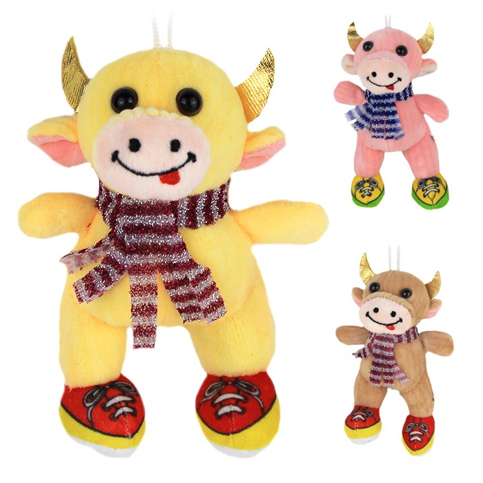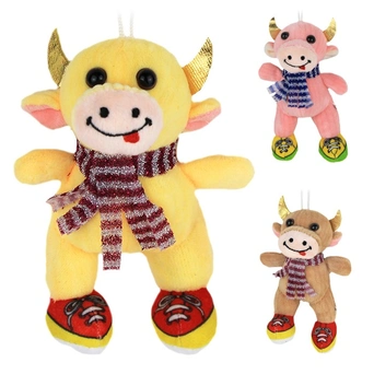 Мягкая игрушка в виде коровы - символ года 2021. Коровка станет приятным сюрпризом для детей и взрослых, весь год она будет создавать отличное настроение и напоминать о своем дарителе. Игрушка мягкая и приятная на ощупь, изготовлена из качественных безопасных материалов, сверху расположен подвес в виде шнурка и присоски для крепления к стеклу и другим гладким поверхностям. Расцветки представлены в ассортименте.