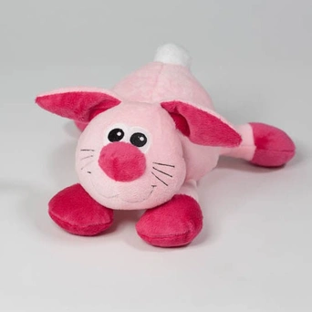 Очаровательный зайчишка, выполненный в нежных розовых тонах, с первого взгляда понравится малышу. Такую игрушку можно всюду взять с собой - на прогулку, в гости и в детский сад, поскольку зайка имеет небольшие размеры и его удобно держать в руках. Сшита игрушка из качественных безопасных материалов, очень аккуратно и качественно.