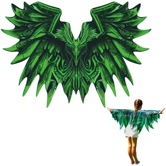 Костюм имеет яркий дизайн с принтом с изображением щитками и драконьей чешуёй. Ткань очень легкая и приятная на ощупь. При движении крылья как будто совершают взмах.