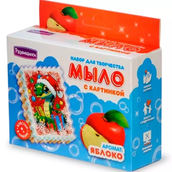 Комплектация: мыльная основа - 1 шт., картинка - 1 шт., пластиковая формочка - 1 шт., инструкция - 1 шт.