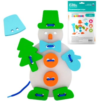 Шнуровка «Снеговик» – яркая и занимательная игрушка для малышей, которая развивает мелкую моторику, координацию движений, внимание и усидчивость.