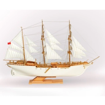 Сборная модель знаменитого парусника "Товарищ", спущенного на воду в Германии под именем Gorch Fock. Надежный, маневренный и устойчивый, барк перешел к Советскому Союзу по Договору о репарациях, где много лет использовался в качестве учебного в Херсонском мореходной училище, а также принимал участие в торжественных мероприятиях и парусных регатах. В комплекте есть клей для сборки, а также подробная инструкция.