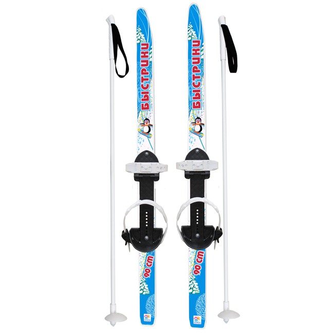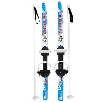 Комплектация: пластиковые лыжи с полужёсткими креплениями и ал.палками в сетке