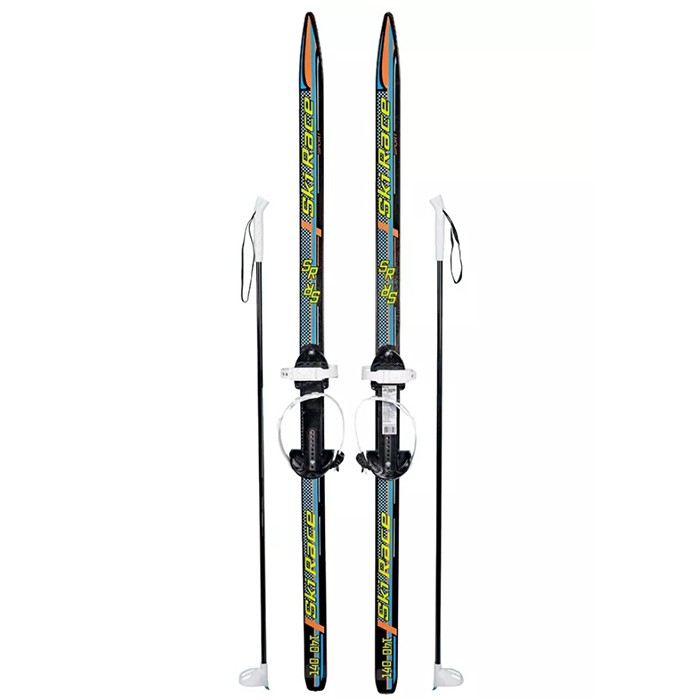 Размеры: 140х5х7смКомплектация: пластиковые лыжи с насечкой, универсальное крепление "Цикл", алюминиевые палки