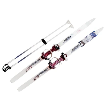 Размеры: 150х5х7смКомплектация: пластиковые лыжи с насечкой, универсальное крепление "Цикл", алюминиевые палки