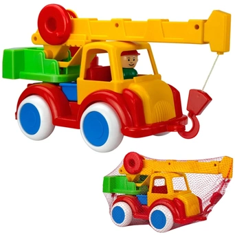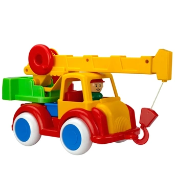 Автокран с фигуркой водителя - это отличная игрушка, с которой можно придумать множество увлекательных сюжетов. Кран оборудован тяжелыми колесами из пвх, которые играют роль инерционного движителя, а также поворотной стрелой и тросом, который наматывается на барабан с трещоткой. Эти особенности сделают игру по-настоящему интересной, а дети смогут развить в процессе навыки мелкой моторики, сюжетно-образное мышление и воображение. Изделие изготовлено из качественных нетоксичных материалов, безопасных для детского здоровья. Цвета представлены в ассортименте.