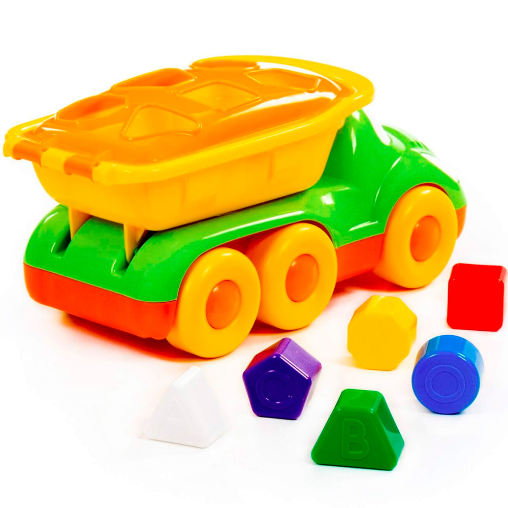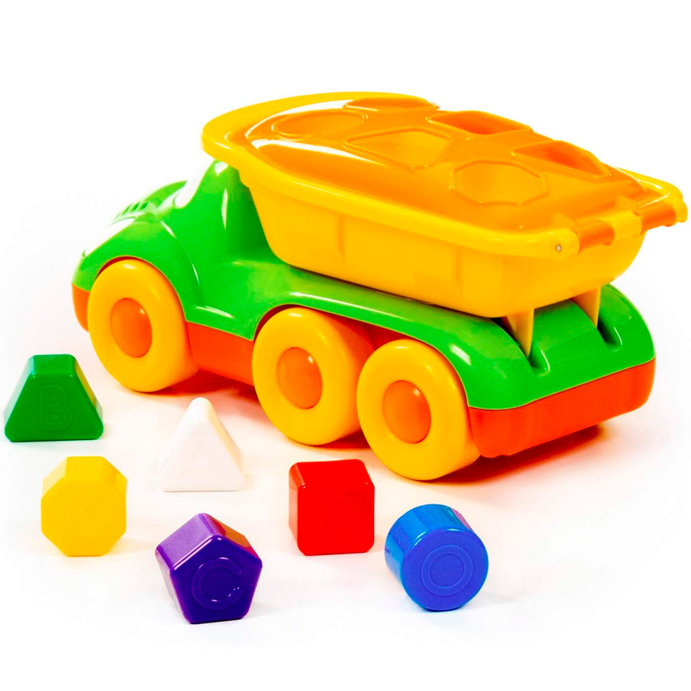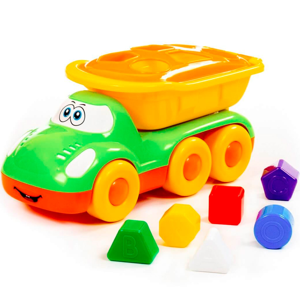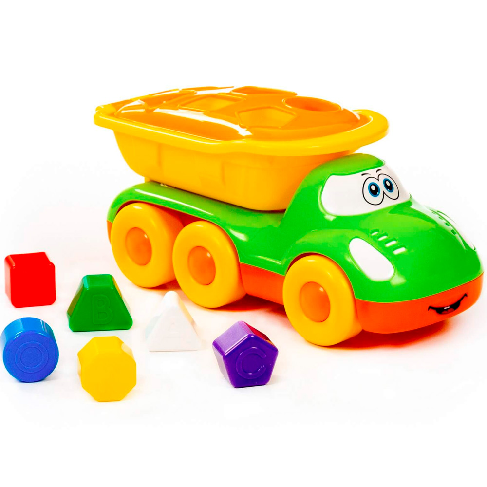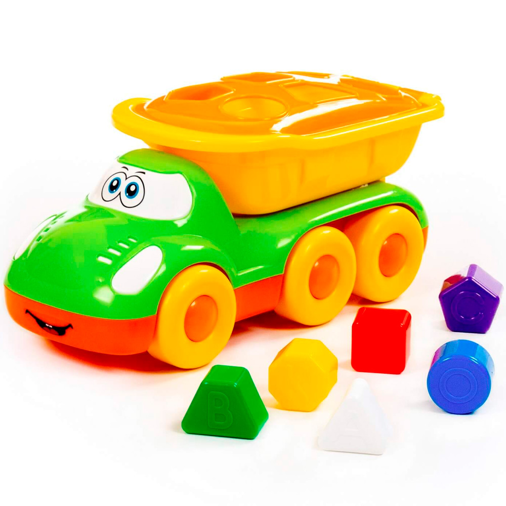 Маленькому любителю автомобилей обязательно понравится яркий грузовик с вместительным кузовом. Кроме того, это и развивающий сортер: сквозь отверстия в кузове малышу предстоит проталкивать фигурки, правильно подобрав их по форме. А еще он познакомится с цветами. Оригинальная машинка для самых маленьких выполнена из высококачественных износостойких материалов. Яркая окраска и интересный дизайн делают машину приметной и привлекательной. Игрушка оснащена крутящимися колесами со свободным ходом и будет хорошо кататься по ровной поверхности. С автомобилем можно устроить массу увлекательных игр с друзьями дома или на улице.