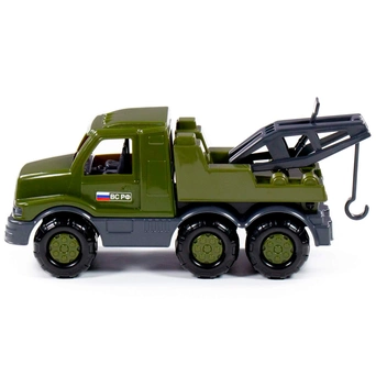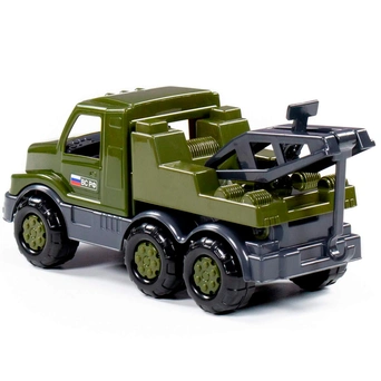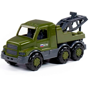 Военный автомобиль-эвакуатор "Гоша" займет достойное место среди игрушечной техники ребенка. Машинка выполнена в цветах, традиционных для вооруженных сил, а также оснащена подвижным краном, открытой кабиной и крутящимися колесами. Автомобиль изготовлен из прочного качественного пластика, не имеет острых краев и зазубрин.
