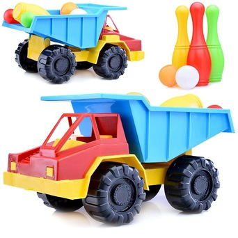 Сразу две игрушки в одном наборе - набор из кеглей с шарами, и яркий карьерный грузовик с вместительным кузовом. Бросая шарики в кегли, ребенок может потренироваться в меткости и ловкости, развивая глазомер, а большой грузовик подойдет для домашних и уличных игр. Все элементы игрушки изготовлены из высококачественного пластика, не имеют острых углов и зазубрин. Товар представлен в ассортименте.