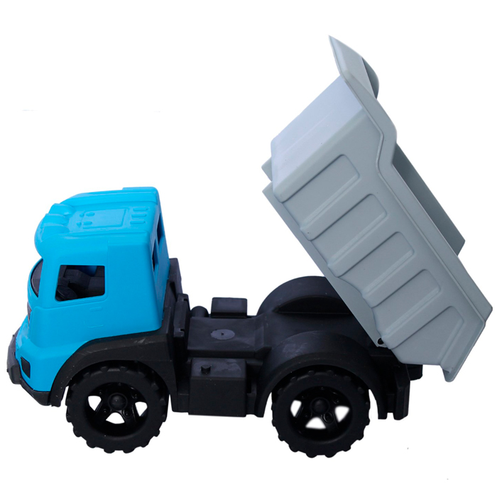 Яркая модель представляет собой копию грузовика с вместительным кузовом.