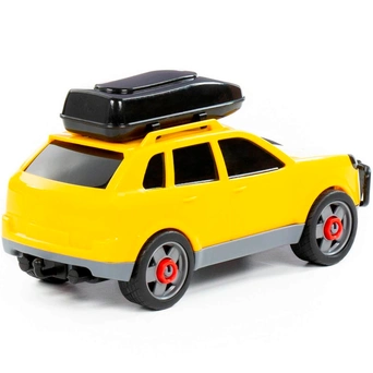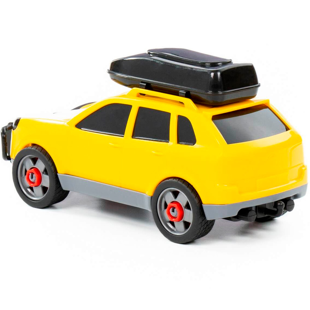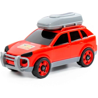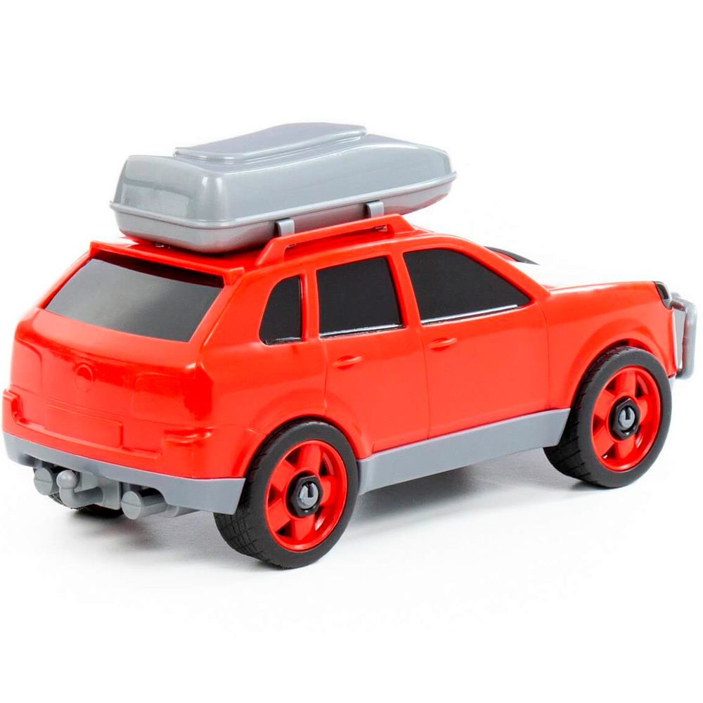 Легковой автомобиль предназначен для увлекательных игр. Оригинальная машинка выполнена из высококачественного пластика. Яркая окраска и интересный дизайн делают машину привлекательной. Окна тонированные, на крыше дополнительный багажный отсек. Игрушка оснащена крутящимися колесами со свободным ходом и будет хорошо кататься по ровной поверхности. Стилизация и характерный дизайн делают машину интересной для малышей, а процесс игры увлекательным. Такая модель станет прекрасным подарком маленькому любителю автомобилей, а также разнообразит игровые сюжеты. С ним можно устроить массу увлекательных игр с друзьями дома или на улице. Изделия просты в уходе и эксплуатации, прочные и долговечные, они будут долго радовать своим внешним видом.