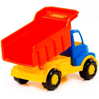 Автомобиль-самосвал "Леон" имеет оптимальный размер для игры как дома, так и на улице. В кузове карьерного типа удобно возить песок, насыпать и ссыпать его в песочницу.