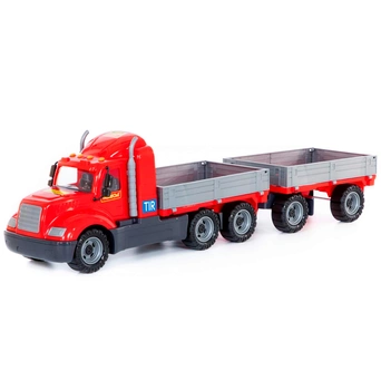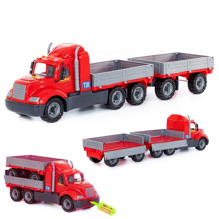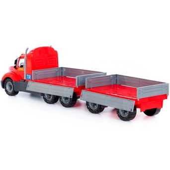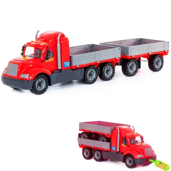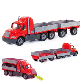 Грузовик с прицепом разнообразит игровые сюжеты и позволит перевозить массу вещей. Оригинальная машинка для самых маленьких выполнена из высококачественного пластика. Яркая окраска и интересный дизайн делают машину реалистичной, а процесс игры интересным. Игрушка оснащена крутящимися колесами со свободным ходом и будет хорошо кататься по ровной поверхности. Такая модель станет прекрасным подарком маленькому любителю автомобилей, а также разнообразит игровые сюжеты. С ним можно устроить массу увлекательных игр с друзьями дома или на улице. Изделия просты в уходе и эксплуатации, прочные и долговечные, они будут долго радовать своим внешним видом.