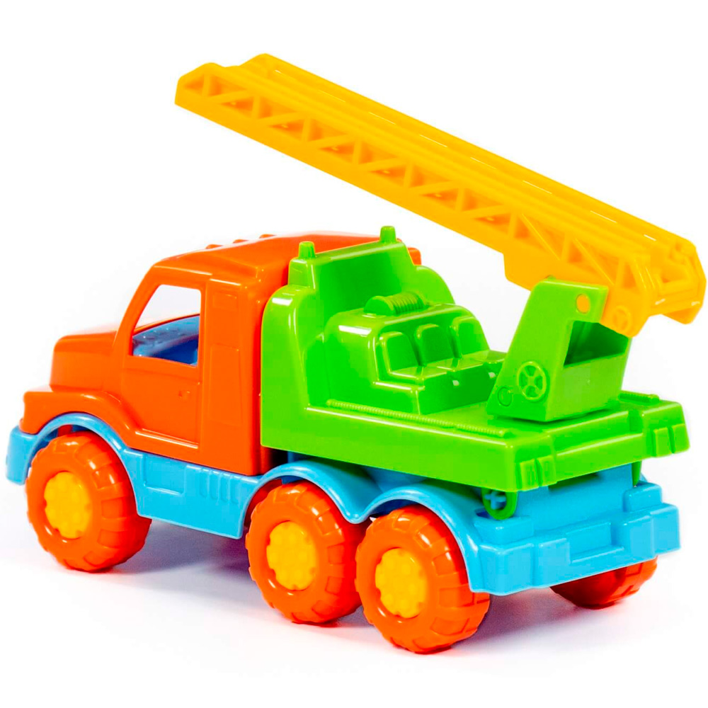 Модель пожарной спецмашины для самых маленьких функциональна и выполнена из высококачественного пластика. Лестница подвижна: выдвигается и поднимается. Яркая окраска и интересный дизайн делают машину привлекательной. Игрушка оснащена крутящимися колесами со свободным ходом и будет хорошо кататься по ровной поверхности. Такая модель станет прекрасным подарком маленькому любителю автомобилей и разнообразит игровые сюжеты. С ним можно устроить массу увлекательных игр с друзьями дома или на улице. Изделия просты в уходе и эксплуатации, прочные и долговечные, они будут долго радовать своим внешним видом.