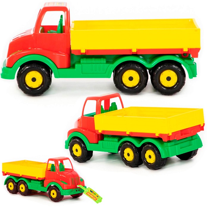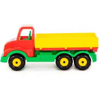 • Яркая модель представляет собой копию грузовика с вместительным кузовом.