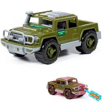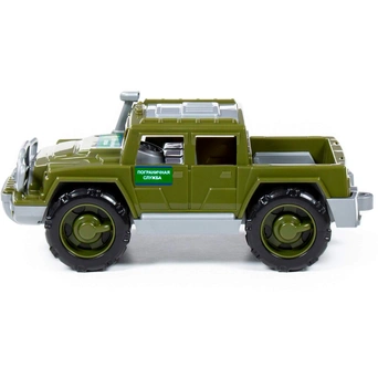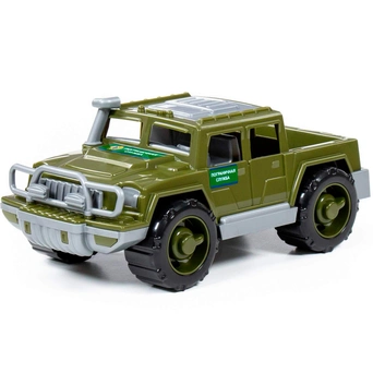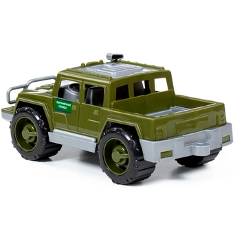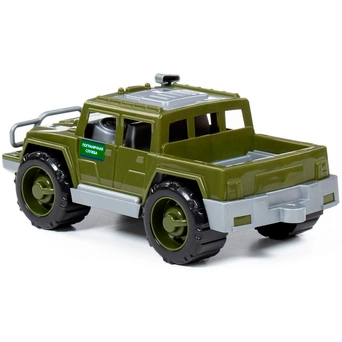 Автомобиль-пикап "Защитник" пограничный займет достойное место среди игрушечной техники ребенка и особенно придется по душе мальчикам. Автомобиль выполнен в военном стиле, в цветах традиционных для военной техники, по бокам имеются наклейки "Пограничная служба", брутальность внешнему виду придает массивный бампер и крупные колеса. Процесс игры поможет малышу освоить навыки пространственного перемещения предметов, потренировать мелкую моторику и фантазию. Автомобиль изготовлен из качественных материалов, безопасных для детского здоровья, отсутствуют острые углы и зазубрины.