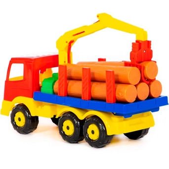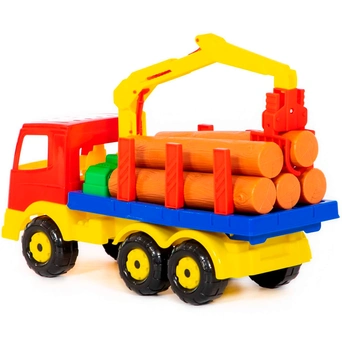 Игрушка "Лесовоз" с поворотно-зажимным краном придется по душе ребенку, и сделает игру с ним по-настоящему увлекательной. В комплекте с лесовозом идут бревна, которые кладутся в кузов автомобиля и подходят по размеру к зажимному крану. Игра с такой машинкой поможет малышу познакомиться с понятием спецтехники, изучить ее назначение, а также развить сюжетно-образное мышление. Товар представлен в ассортименте.