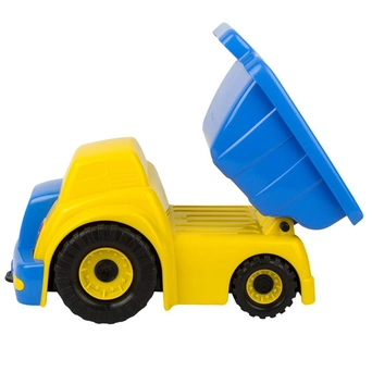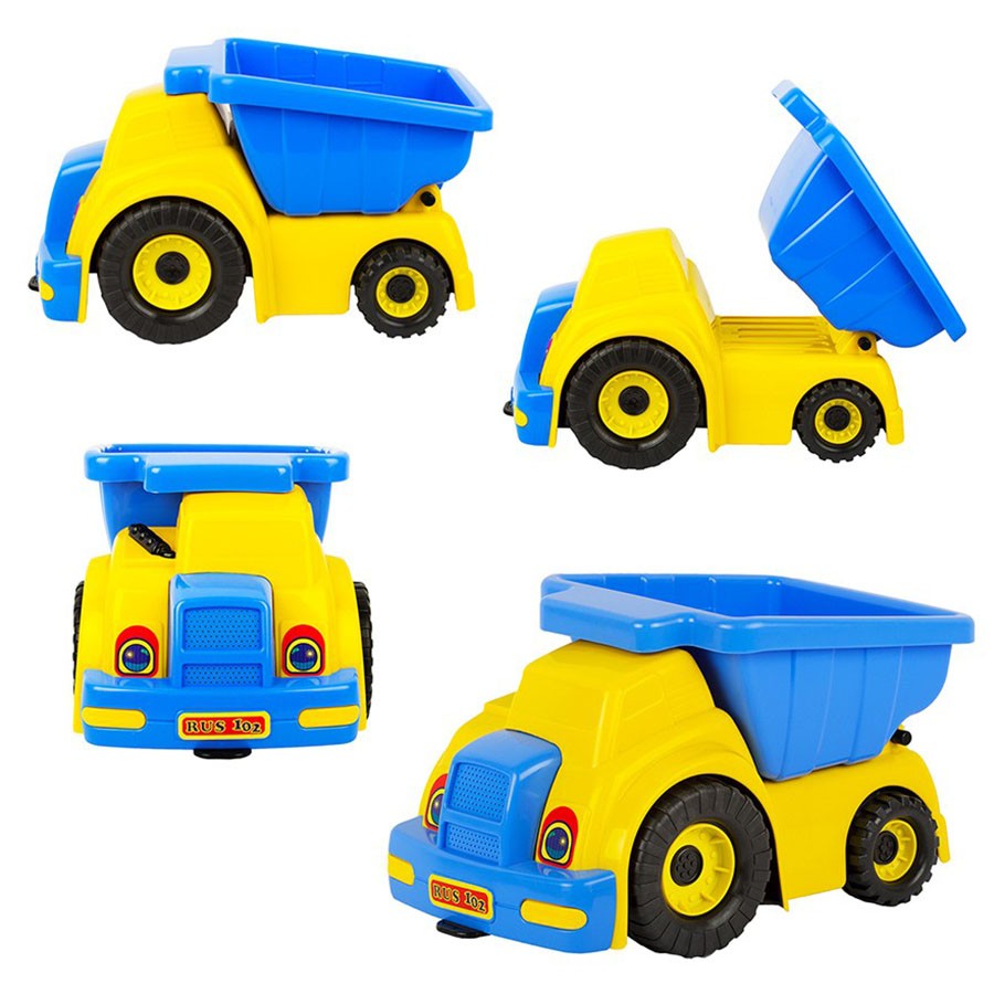• Яркая модель представляет собой копию грузовика с вместительным кузовом.