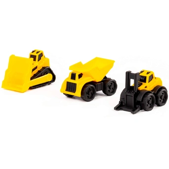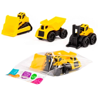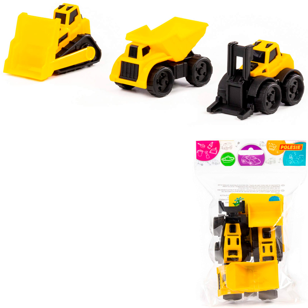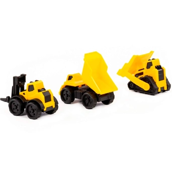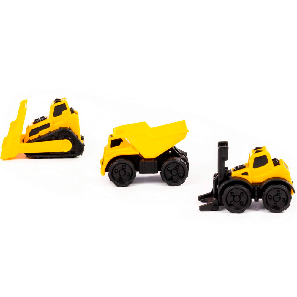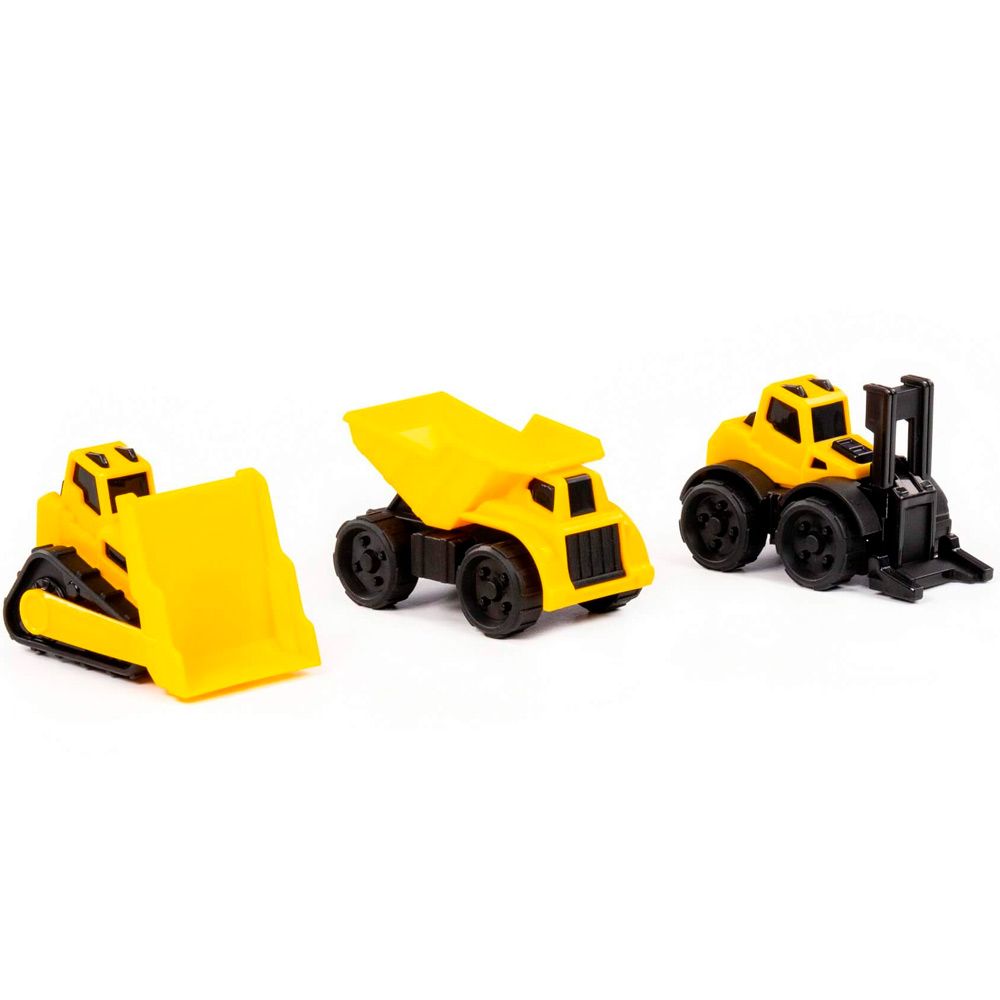 - Комплектация: самосвал — 1 шт., погрузчик — 1 шт., бульдозер — 1 шт.