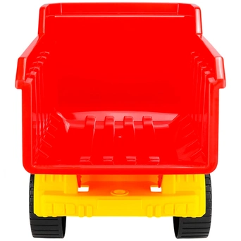 - Развивающий эффект: играя с грузовиком, малыш будет тренировать координацию движений, мелкую моторику и воображение. Откидывающийся кузов добавит реалистичности игровым сценариям.