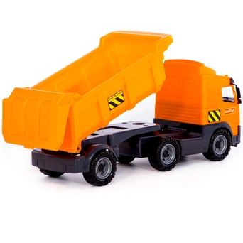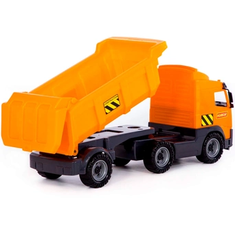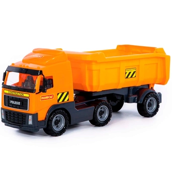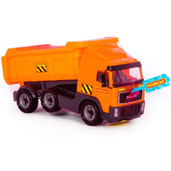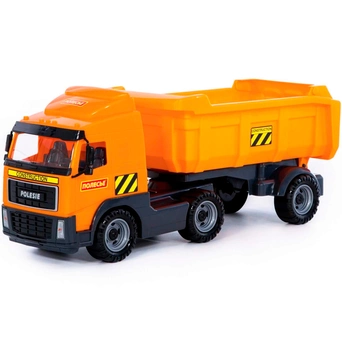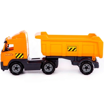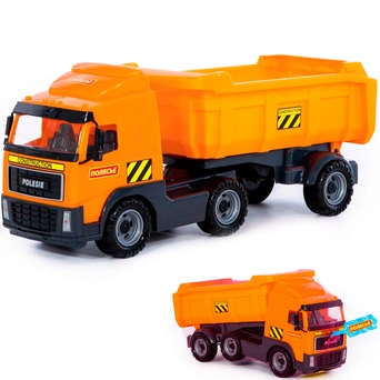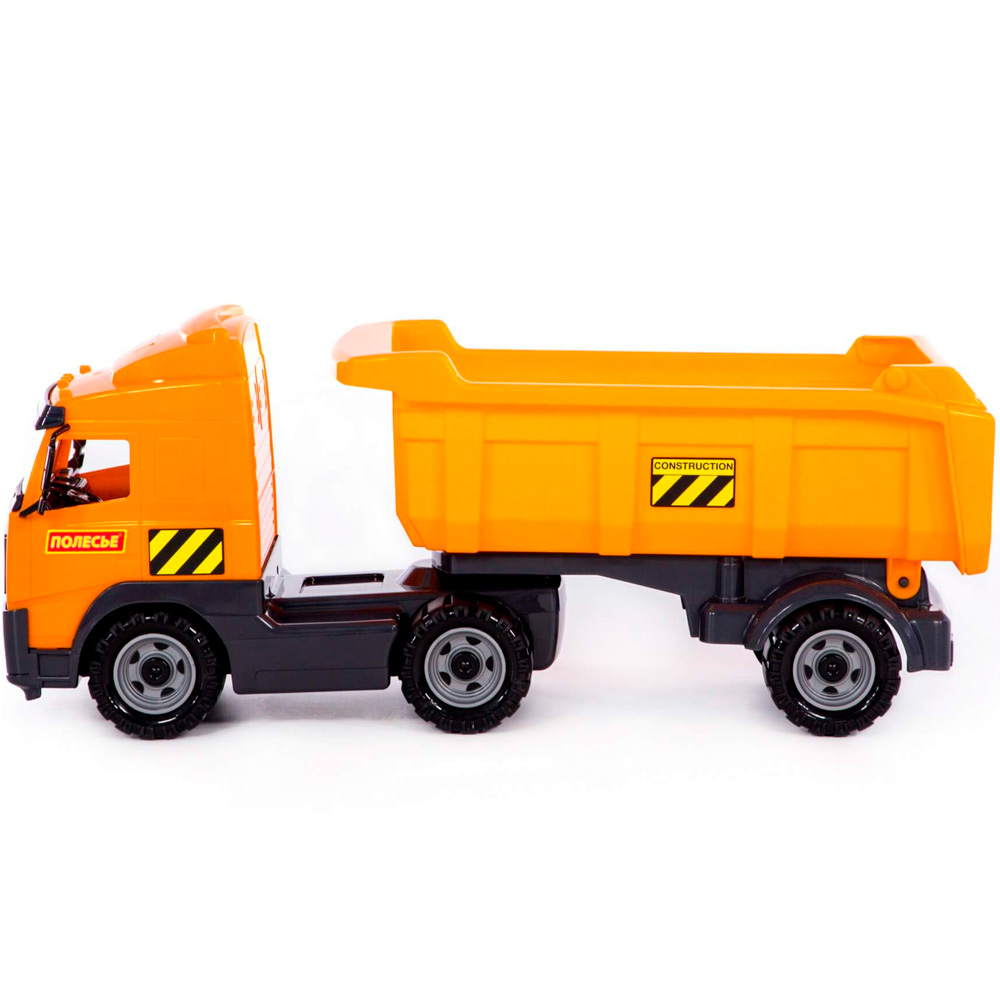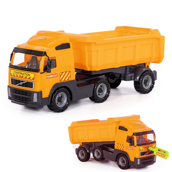 Большой автомобиль-самосвал с полуприцепом - это широкий простор для детской фантазии и увлекательных игр. Кабина и салон прекрасно детализированы, полуприцеп машинки подвижен, а кузов легко откидывается, высыпая все содержимое к воображаемому месту стройки. Играя с такой машинкой, ребенок потренирует фантазию, сюжетно-образное мышление и отлично проведет время. Изделие изготовлено из качественного нетоксичного пластика. Цвета представлены в ассортименте.