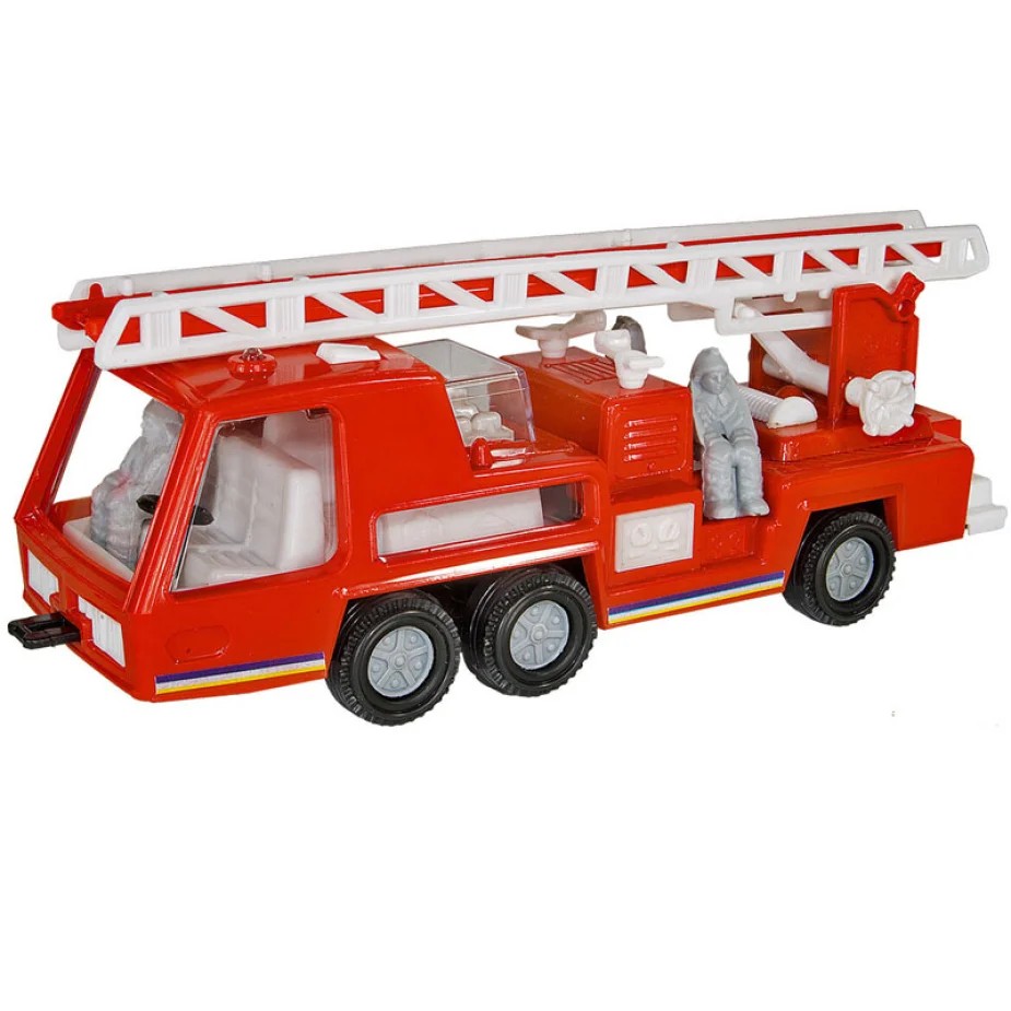 • Яркая модель представляет собой копию пожарного автомобиля, оснащённого выдвижной лестницей.