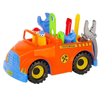 Комплектация: машинка - 1 шт., фигурка - 2 шт., набор инструментов (плоскогубцы, 2 гаечных ключа, 2 отвёртки, 3 пластины, болты и гайки - 8 шт.)