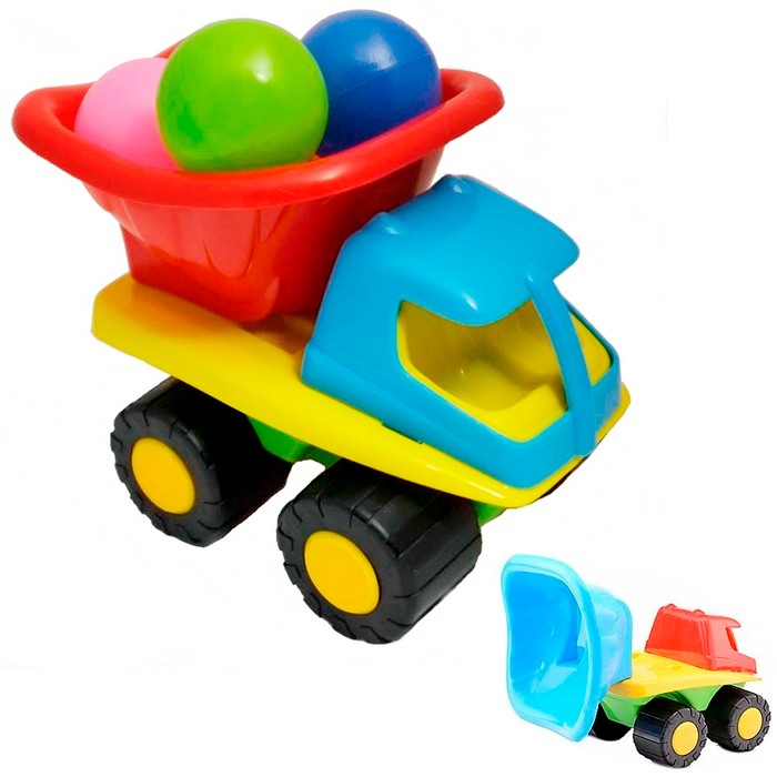 Сразу две игрушки в одном наборе - яркий самосвал и небольшие пластиковые шарики, с которыми можно придумывать множество увлекательных игр. Можно потренироваться в меткости, бросая шарики в кузов машинки, или же перевозить их по воображаемым дорогам, представляя себя водителем - все это поможет ребенку в развитии мелкой и крупной моторики и фантазии. Изделие изготовлено из качественных нетоксичных материалов. Товар представлен в ассортименте.