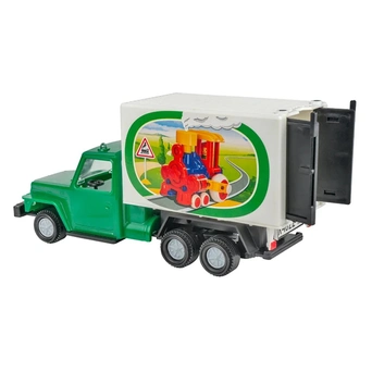 • Яркая модель представляет собой копию автофургона для перевозки на дальние расстояния с вместительным кузовом.
