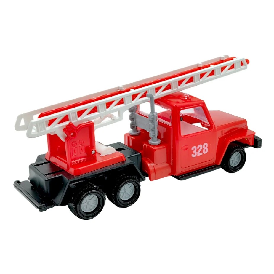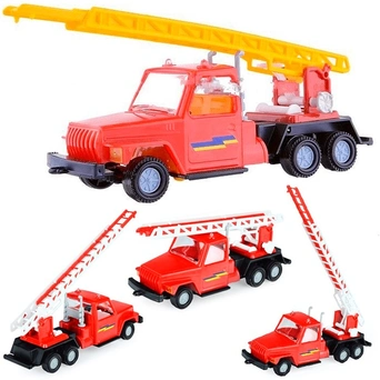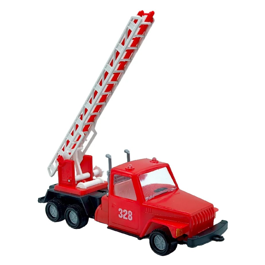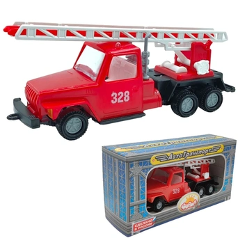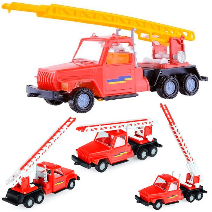 • Яркая модель представляет собой копию пожарного автомобиля, оснащённого выдвижной лестницей.