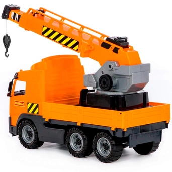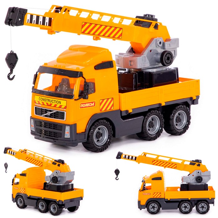 Стилизованный автокран Volvo выполнен из высококачественных износостойких материалов. Яркая окраска и интересный дизайн делают машину приметной и привлекательной. Игрушка оснащена крутящимися колесами со свободным ходом и будет хорошо кататься по ровной поверхности. Автомобиль оснащён подъёмным краном, угол наклона и длину которого можно менять. На поворотной платформе установлен подъёмный механизм. Борта кузова откидываются. Стилизация и характерный дизайн делают машину интересной для малышей, а процесс игры увлекательным. Такая модель станет прекрасным подарком маленькому любителю автомобилей, а также разнообразит игровые сюжеты. С ним можно устроить массу увлекательных игр с друзьями дома или на улице. Оптимальные габариты позволят удобно захватывать игрушку. Изделия просты в уходе и эксплуатации, прочные и долговечные