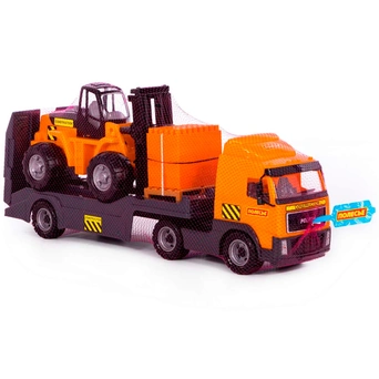 Комплектация: "Volvo", автомобиль-трейлер + автокар + конструктор "Супер-Микс" - 30 элем. на поддоне