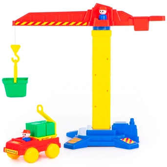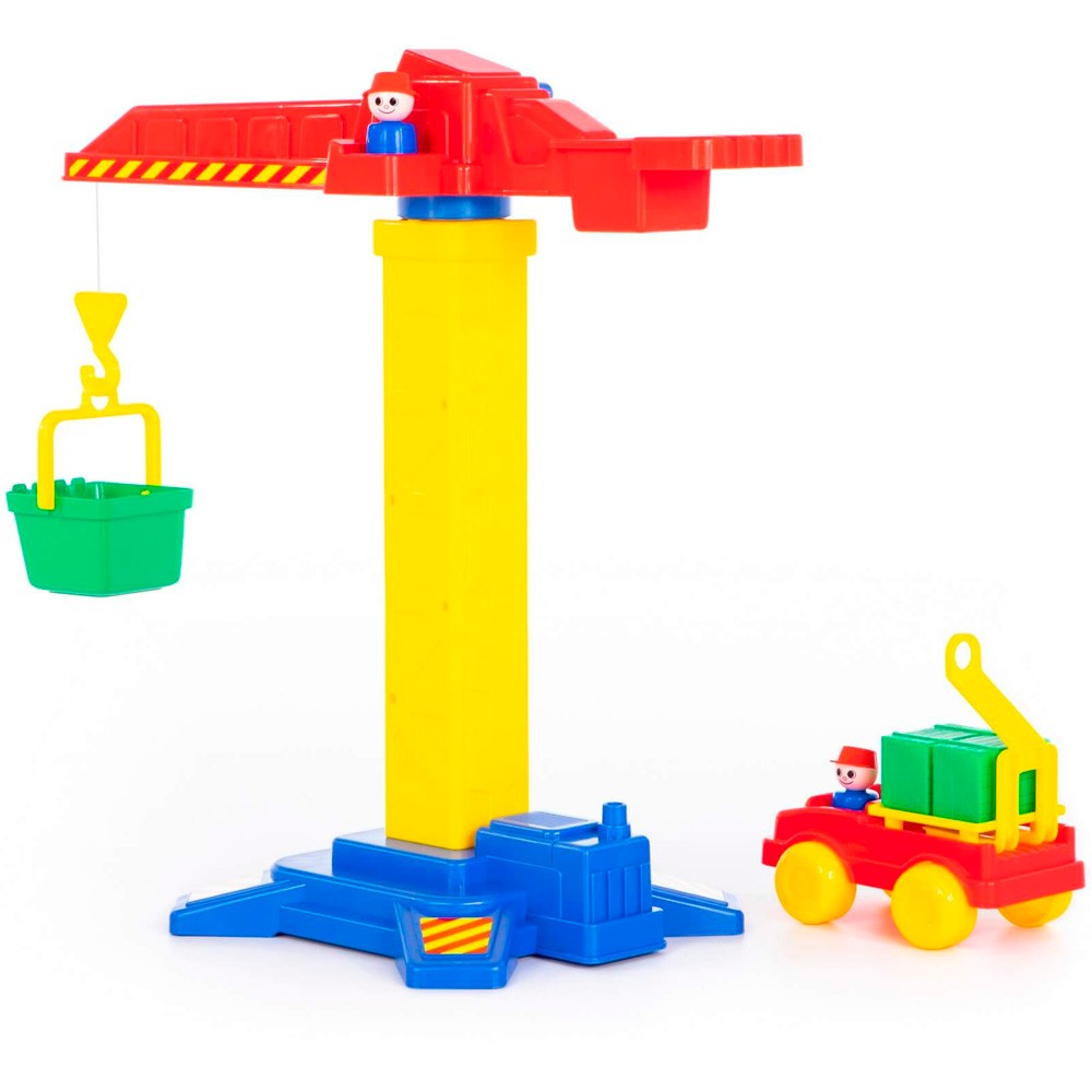 Комплектация: кран, машинка, кювета, аксессуары, фигурки строителейМатериал: пластик